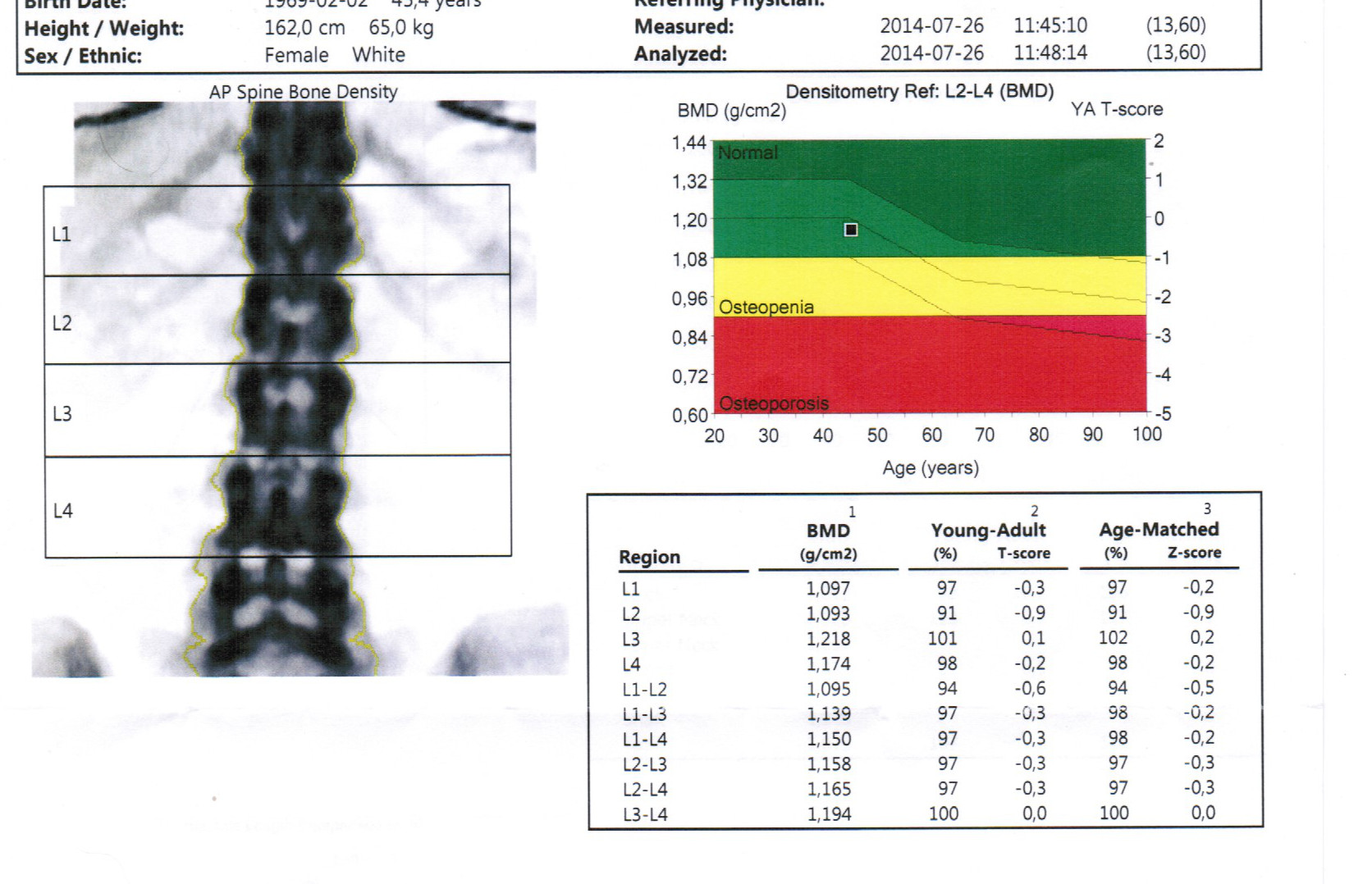 Zdjęcia pochodzą z własnego archiwum – skanowany prawdziwy wynik badania metodą DXA. Nie zezwalam na wykorzystanie skanów bez mojej zgody.
